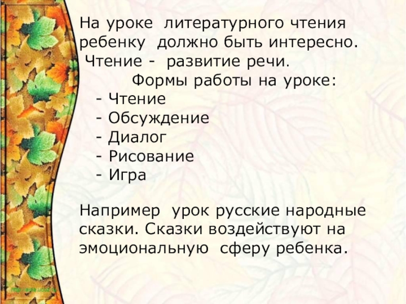 Слайд 11На уроке литературного чтения ребенку должно быть интересно.