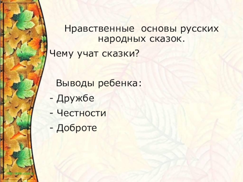 Например урок русские народные сказки. Сказки воздействуют на эмоциональную сферу ребенка.