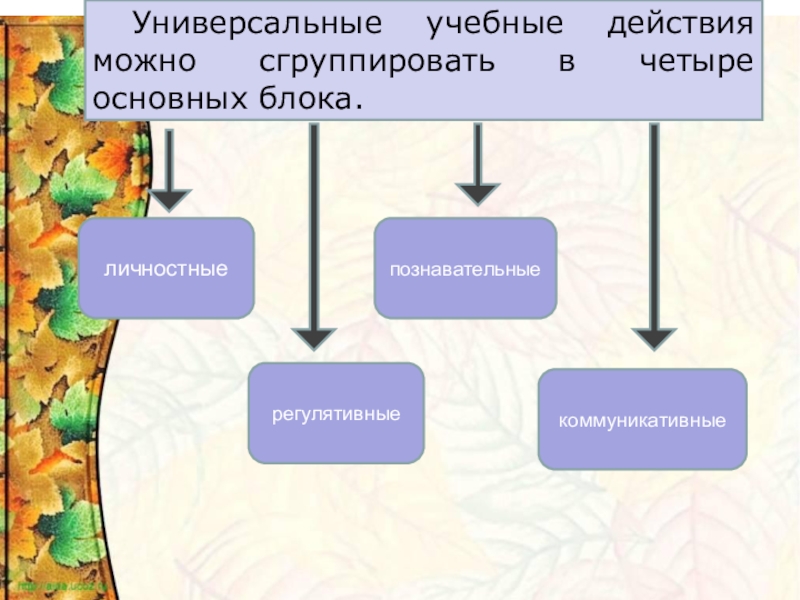 Универсальные учебные действия можно сгруппировать в четыре основных блока.