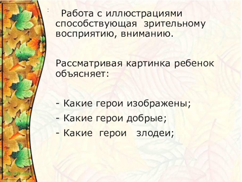 Работа с иллюстрациями способствующая зрительному восприятию, вниманию.