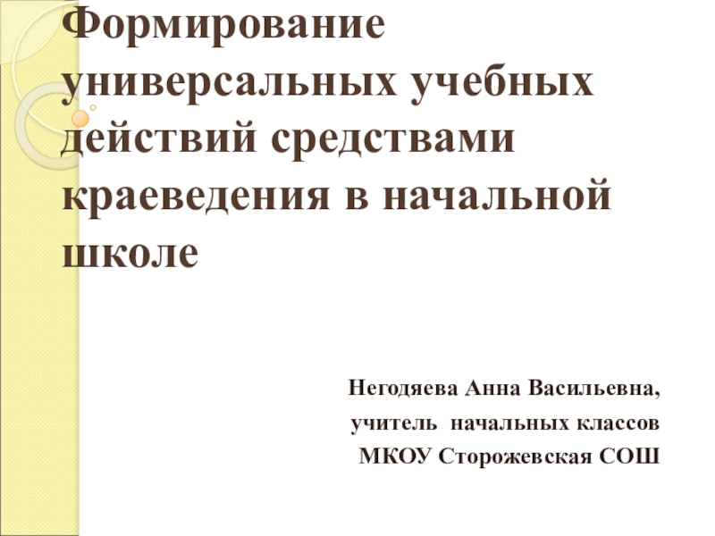 Слайд 1Формирование универсальных учебных действий средствами краеведения в начальной школе