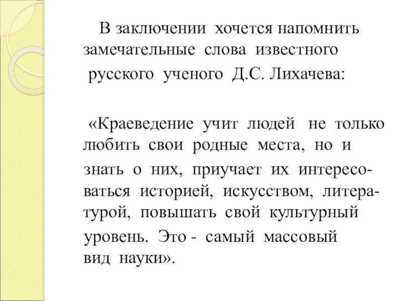 Слайд 20 Кроме того, посредством краеведения школьникам дается представление