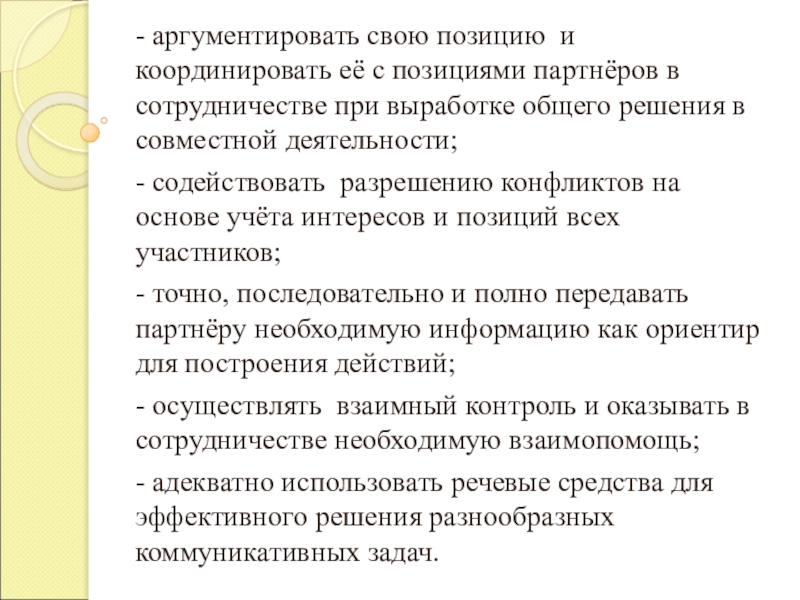 Слайд 10- аргументировать свою позицию и координировать её с позициями партнёров в