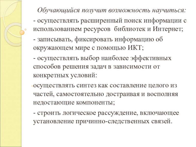 Слайд 5Выпускник получит возможность научиться:
