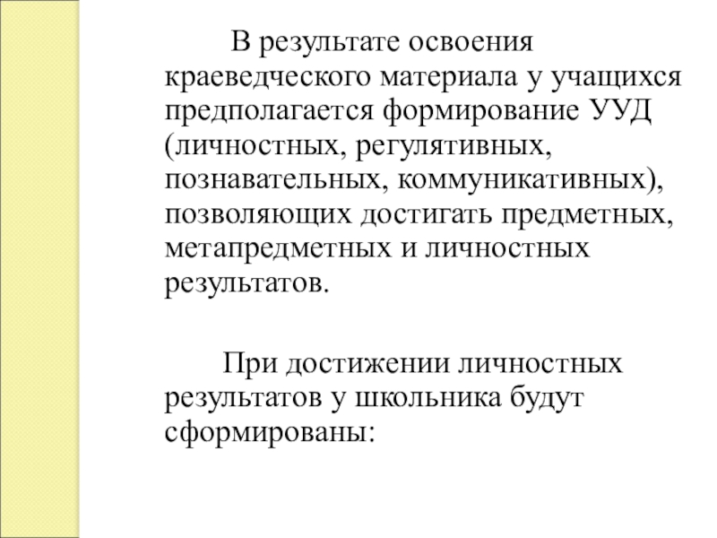 Слайд 2 В результате освоения краеведческого материала