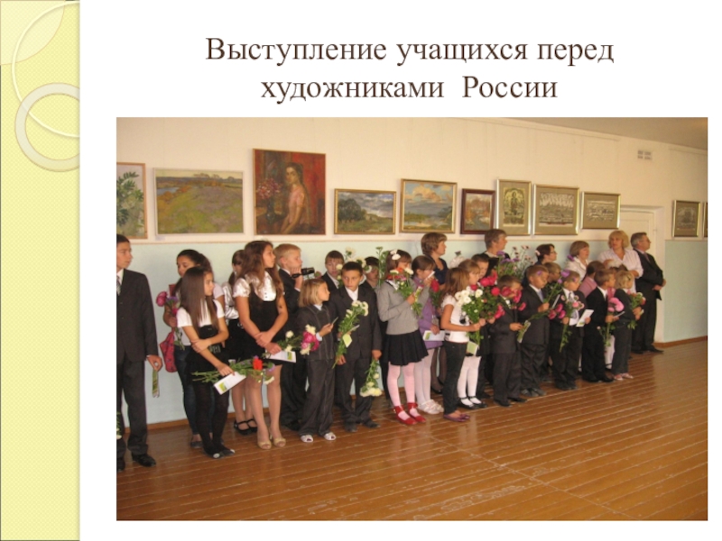 Слайд 32Выступление учащихся перед художниками России