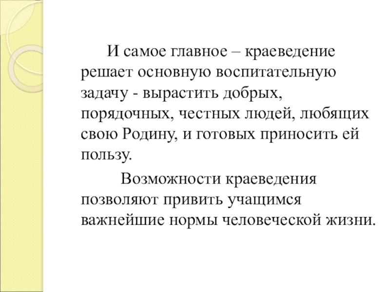 Возможности краеведения позволяют привить учащимся важнейшие нормы человеческой жизни.