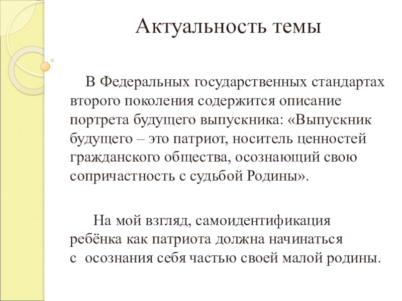 На мой взгляд, самоидентификация ребёнка как патриота должна начинаться с осознания себя частью своей малой родины.