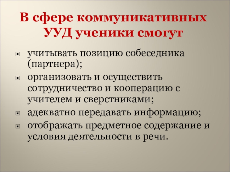 Слайд 22В сфере коммуникативных УУД ученики смогут