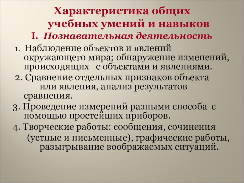 1. Наблюдение объектов и явлений окружающего мира; обнаружение изменений, происходящих с объектами и явлениями.