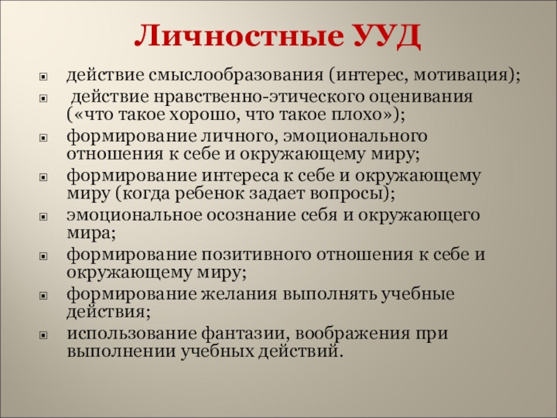 формирование личного, эмоционального отношения к себе и окружающему миру;