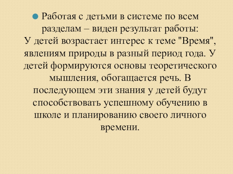 Создание необходимых условий в системе эффективной работы с детьми дошкольного возраста по формированию временных представлений.