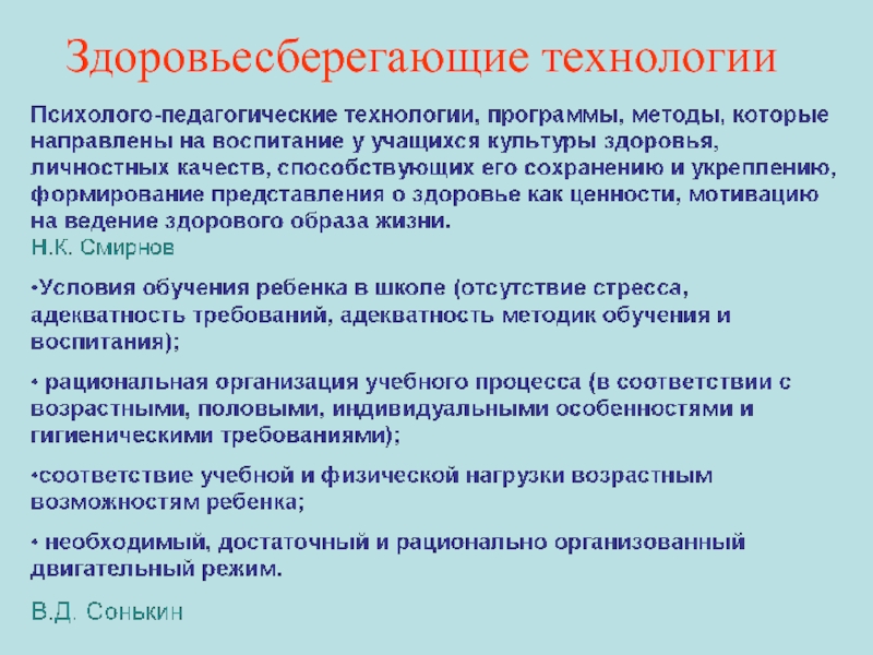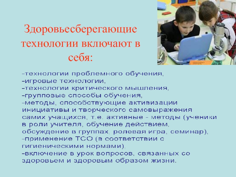 Слайд 14Здоровьесберегающие технологии включают в себя: