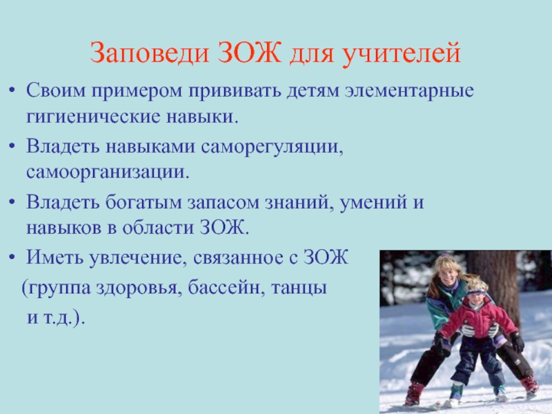 Владеть богатым запасом знаний, умений и навыков в области ЗОЖ.