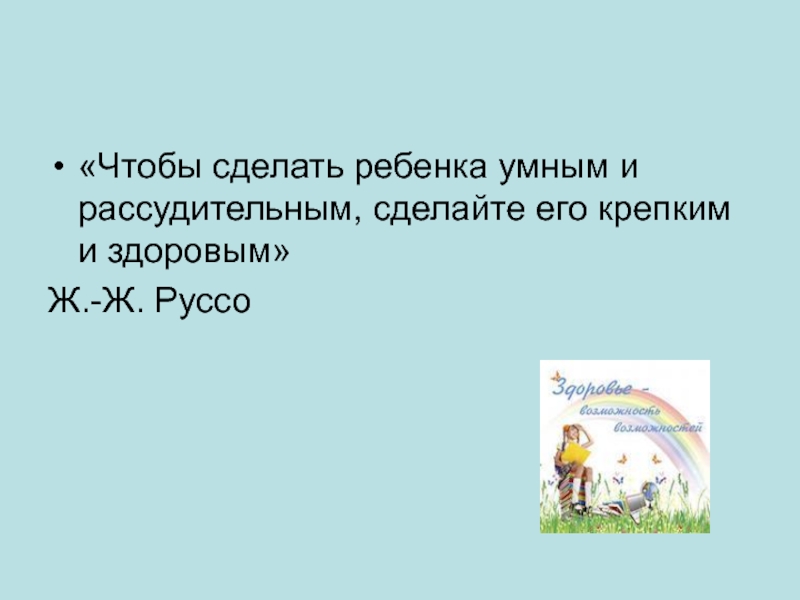 Слайд 3«Чтобы сделать ребенка умным и рассудительным, сделайте его крепким и здоровым»
