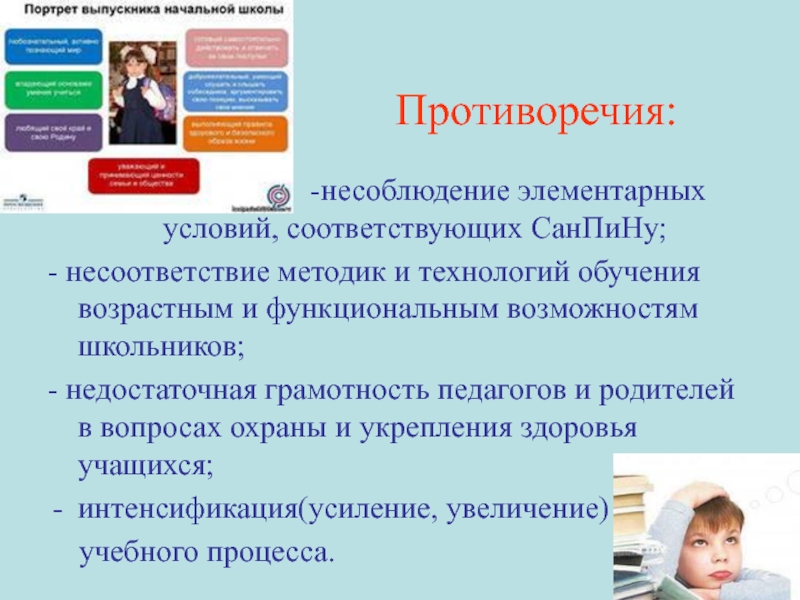 - недостаточная грамотность педагогов и родителей в вопросах охраны и укрепления здоровья учащихся;
