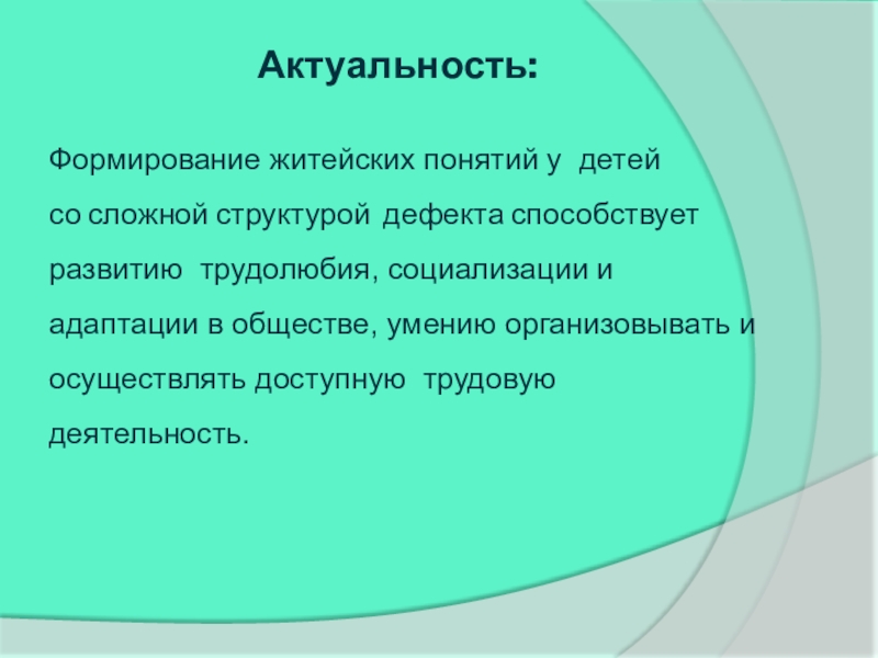 трудолюбия, социализации и адаптации в обществе, умению организовывать и осуществлять доступную трудовую деятельность.