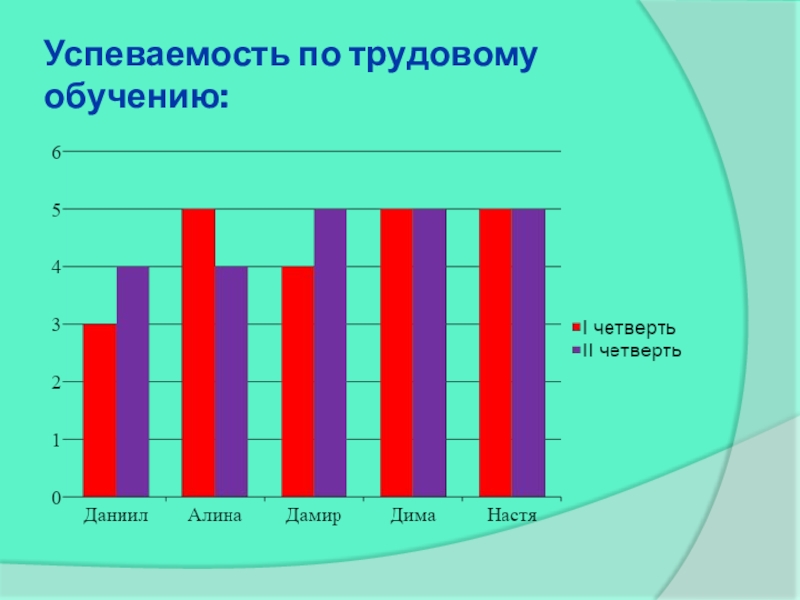 Слайд 20Успеваемость по трудовому обучению: