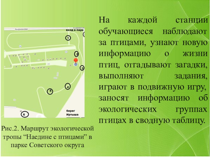 Рис.2. Маршрут экологической тропы “Наедине с птицами” в парке Советского округа