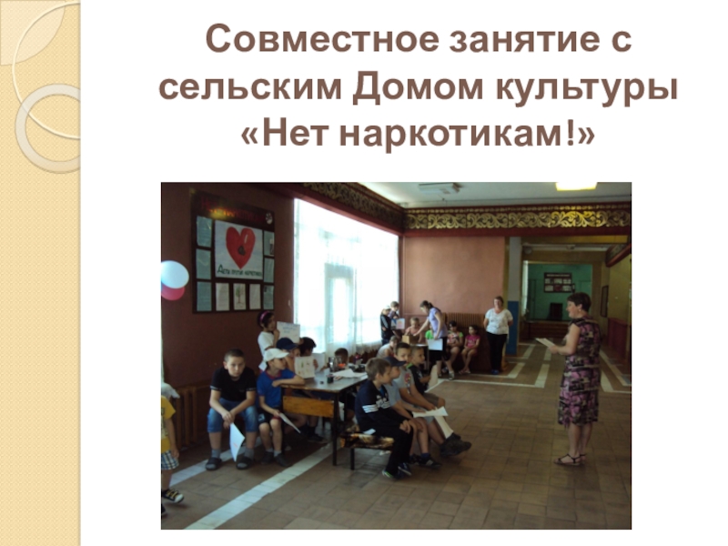 Слайд 12Совместное занятие с сельским Домом культуры «Нет наркотикам!»
