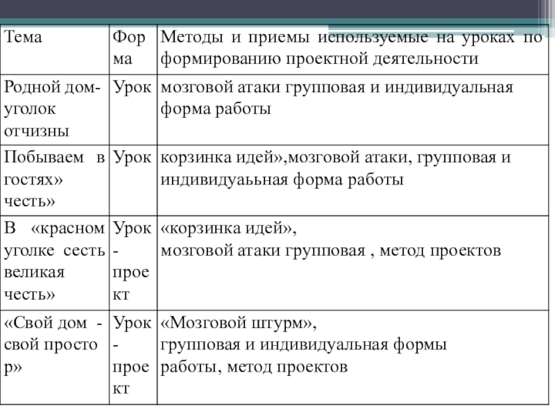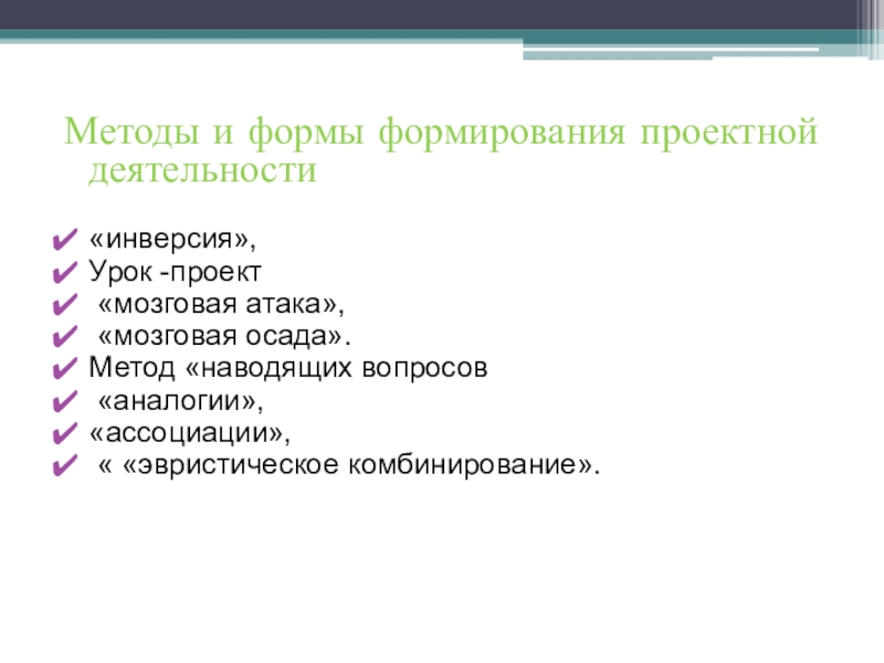 Слайд 17Методы и формы формирования проектной деятельности