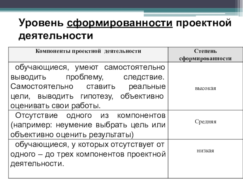 Слайд 23Уровень сформированности проектной деятельности
