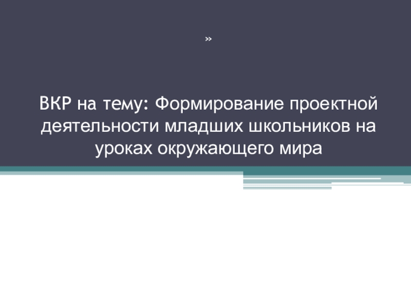 ВКР на тему: Формирование проектной деятельности младших школьников на уроках