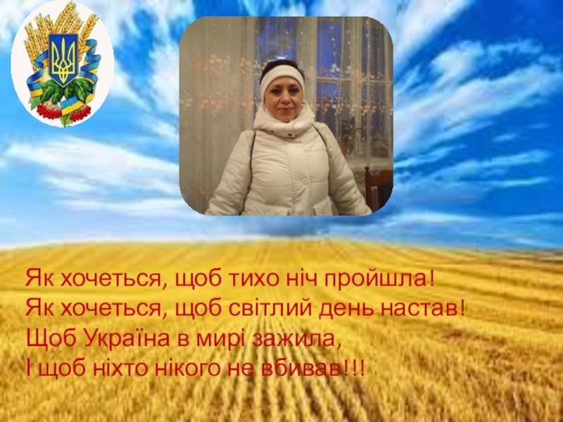 Як хочеться, щоб тихо ніч пройшла!Як хочеться, щоб світлий день настав!Щоб Україна в мирі зажила,І щоб ніхто