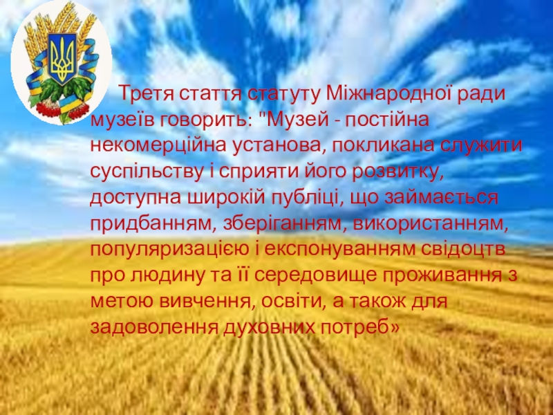 Третя стаття статуту Міжнародної ради музеїв говорить: