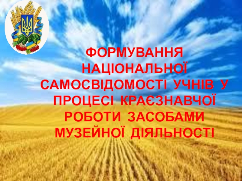 Слайд 1ФОРМУВАННЯ НАЦІОНАЛЬНОЇ САМОСВІДОМОСТІ УЧНІВ У ПРОЦЕСІ КРАЄЗНАВЧОЇ РОБОТИ ЗАСОБАМИ МУЗЕЙНОЇ ДІЯЛЬНОСТІ