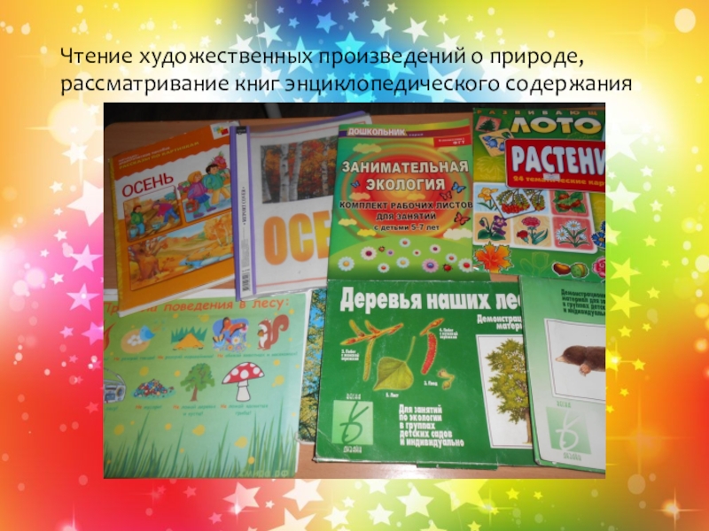 Слайд 13Чтение художественных произведений о природе,