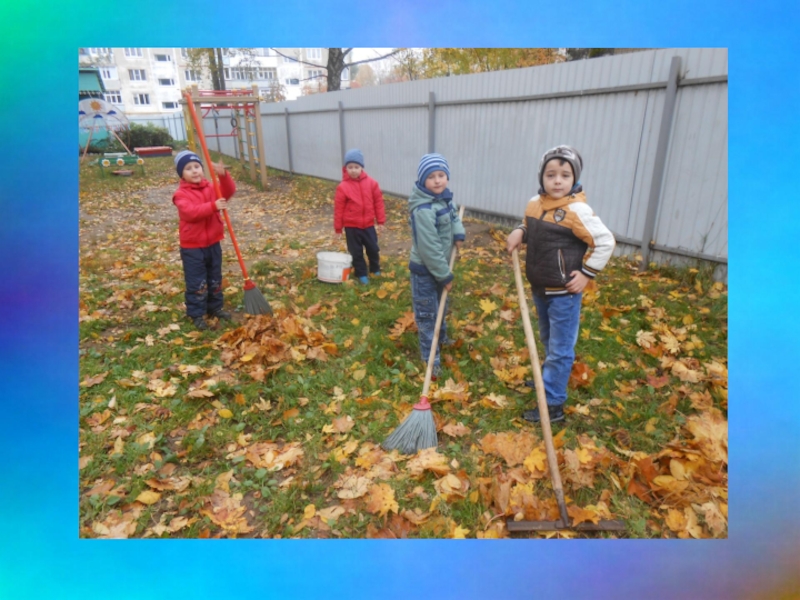 Слайд 8 Труд. Интересная и разнообразная работа проводится в цветнике ,на огороде