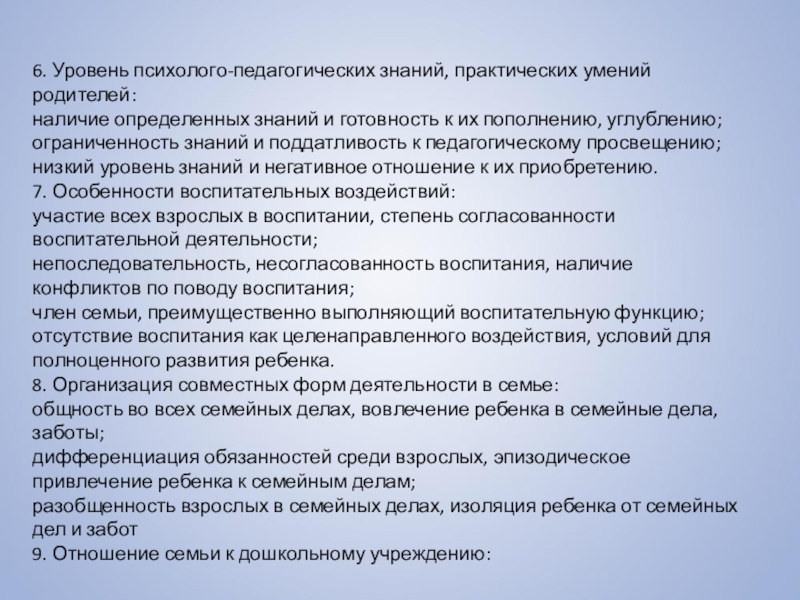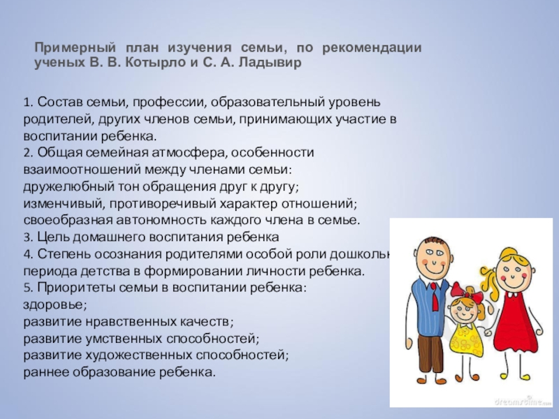 1. Состав семьи, профессии, образовательный уровень родителей, других членов семьи, принимающих участие в воспитании ребенка.