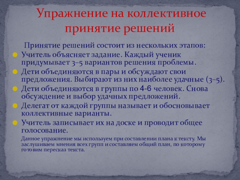 Упражнение на коллективное принятие решений