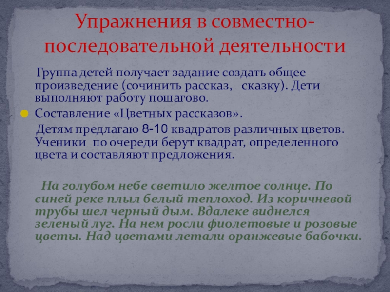 Упражнения в совместно-последовательной деятельности