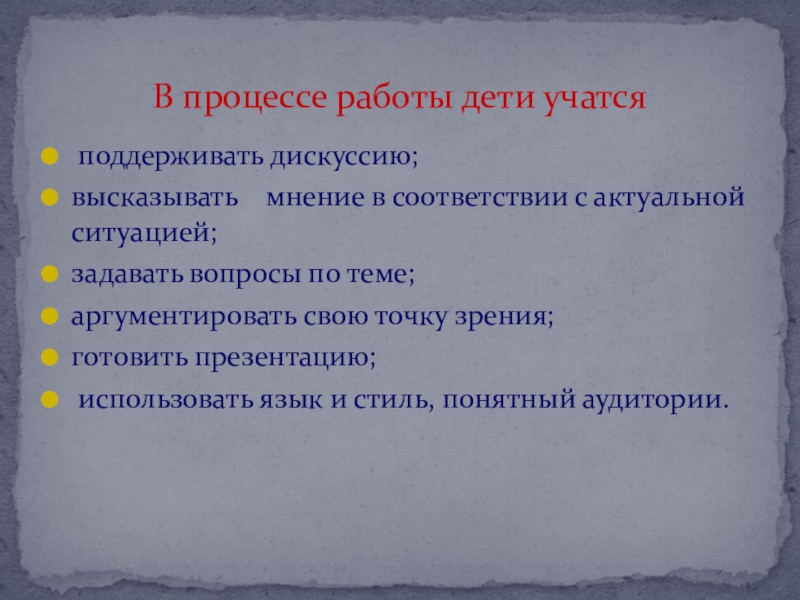 В процессе работы дети учатся