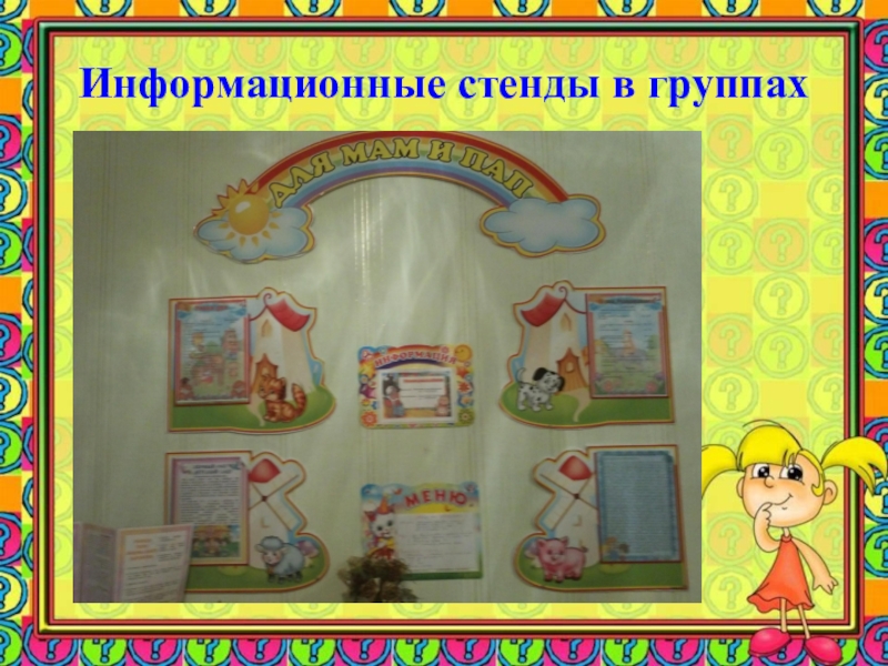 Наглядные формы общения способны выполнять задачи ознакомления родителей с методами и приемами воспитания, оказывать им помощь в решении возникающих проблем. При этом педагогу необходимо выступать в качестве квалифицированного советника, который может подсказать нужный материал, обсудить вместе с родителями возникшую трудность.