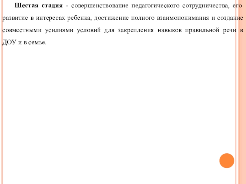 Слайд 8Шестая стадия - совершенствование педагогического сотрудничества, его развитие в интересах ребенка,