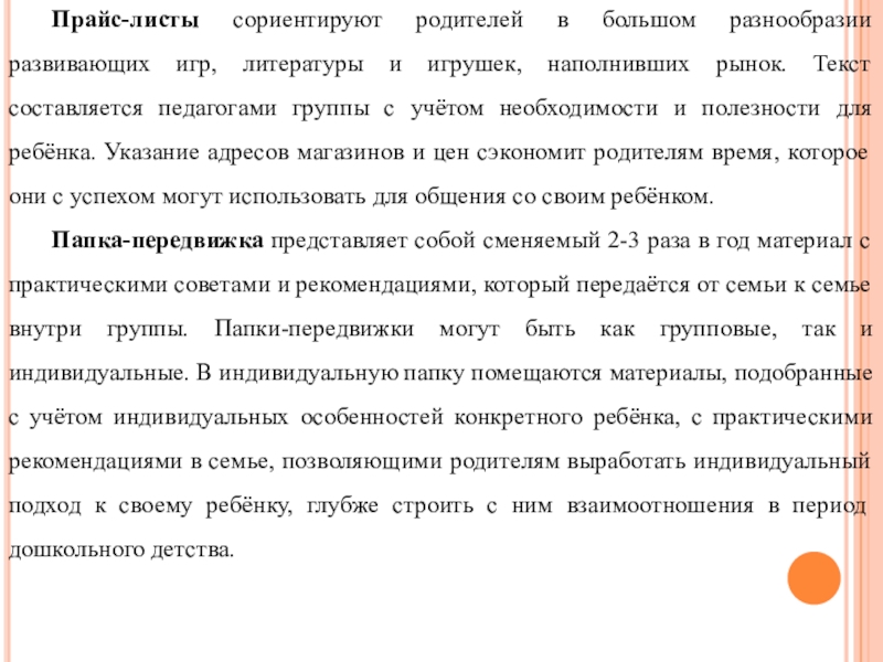 Слайд 19Прайс-листы сориентируют родителей в большом разнообразии развивающих игр, литературы и игрушек,
