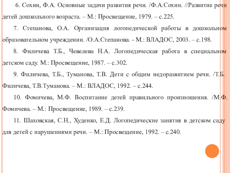 Слайд 28 6. Сохин, Ф.А. Основные задачи развития речи. /Ф.А.Сохин. //Развитие речи
