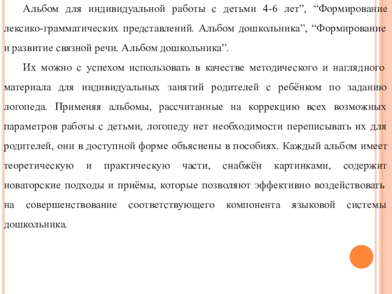 Слайд 18Альбом для индивидуальной работы с детьми 4-6 лет”, “Формирование лексико-грамматических представлений.