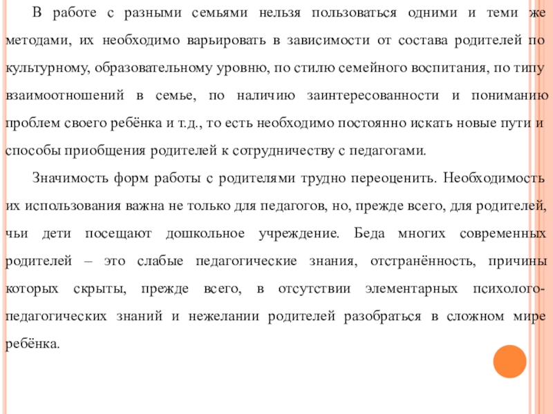Слайд 4В работе с разными семьями нельзя пользоваться одними и теми же