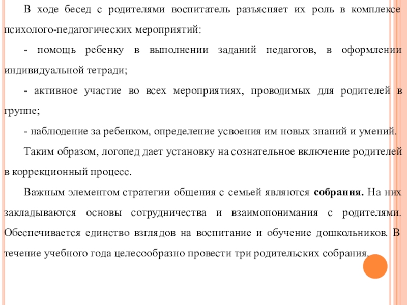 Слайд 10В ходе бесед с родителями воспитатель разъясняет их роль в комплексе
