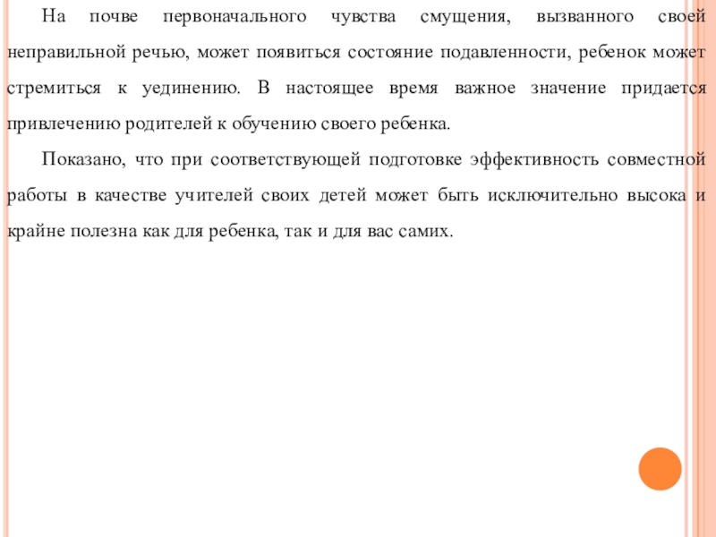 Слайд 26На почве первоначального чувства смущения, вызванного своей неправильной речью, может появиться