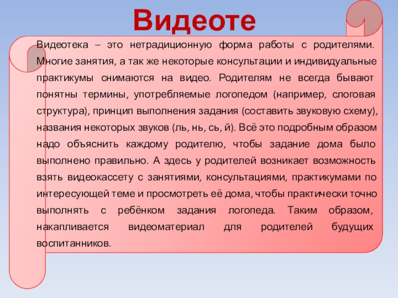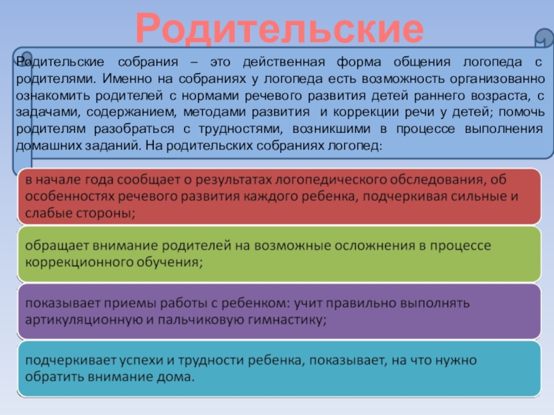 Таким образом, логопед дает установку на сознательное включение родителей в коррекционный процесс.