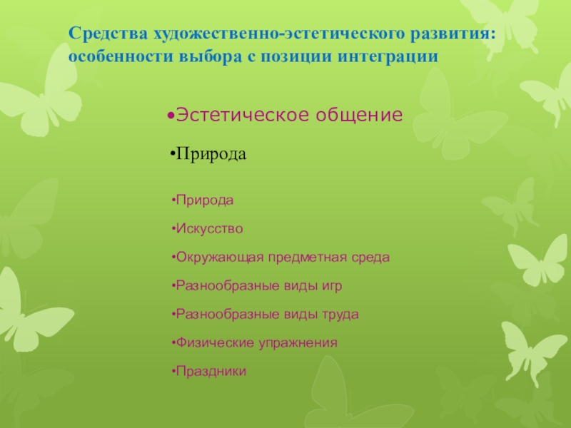 Слайд 24Средства художественно-эстетического развития: особенности выбора с позиции интеграции