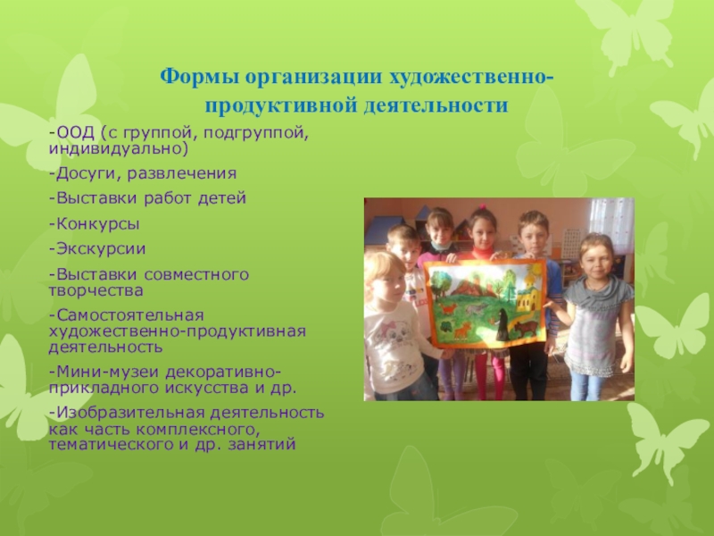 Слайд 21Формы организации художественно-продуктивной деятельности