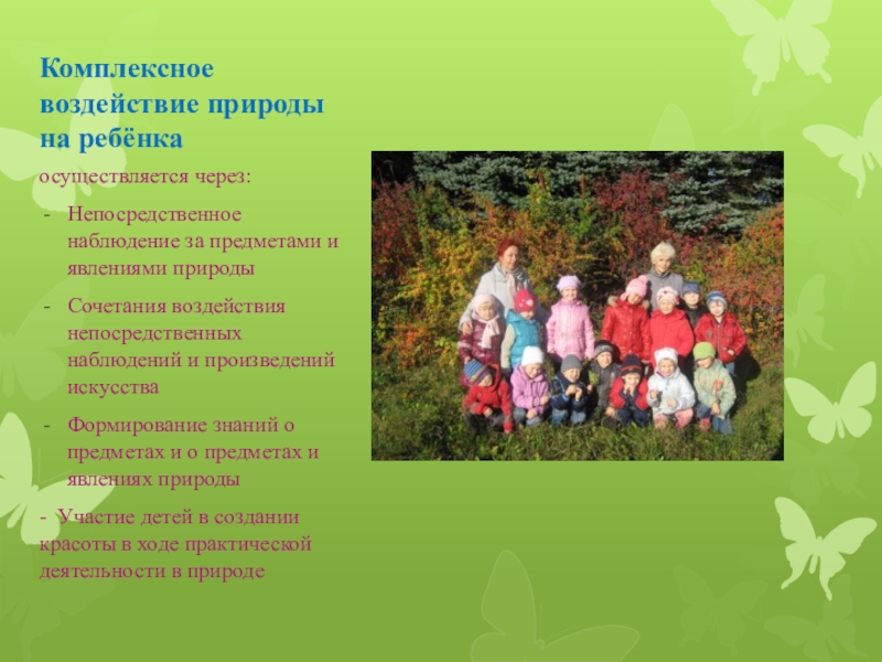 Слайд 27Комплексное воздействие природы на ребёнка