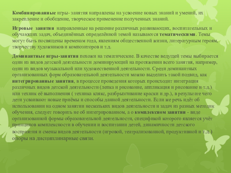Слайд 11Комбинированные игры- занятия направлены на усвоение новых знаний и умений, их