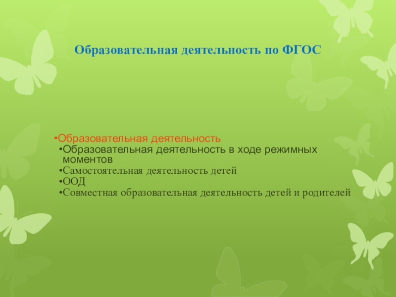 Слайд 17Образовательная деятельность по ФГОС